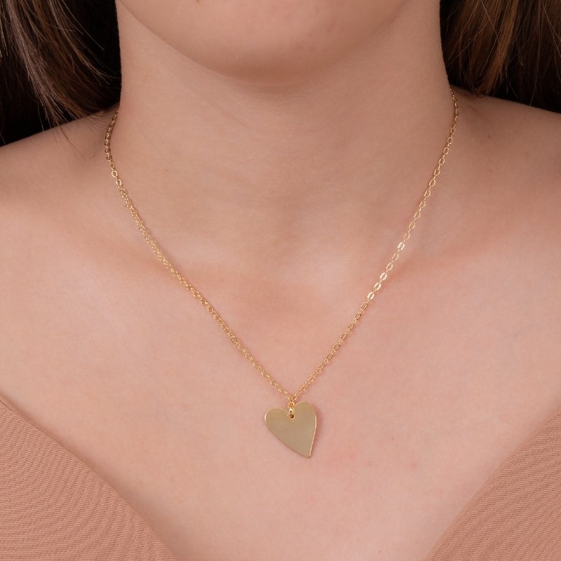 Colar Cadedinho Coração Liso 19mm 40/45cm, delicado e elegante para complementar qualquer estilo.Brincos e piercing fake: 5 milésimos de Ouro 18k.