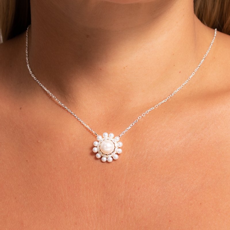 Colar Cartier com pingente redondo, pérola e zircônia 45cm Prata 925-SR, um design sofisticado e atemporal que exala elegância.Peças em PRATA 925.