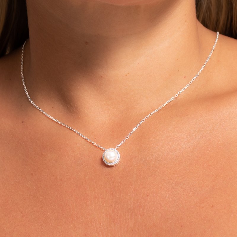 Colar Cartier Pingente Redondo Perola 11mm 45cm Prata 925-sr