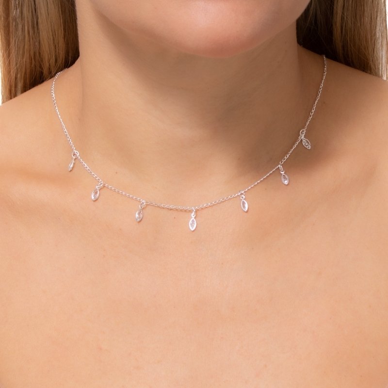 Colar elo grume oval com zircônias em prata 925, 35/40cm, brilho sofisticado e design elegante.peças em PRATA 925.