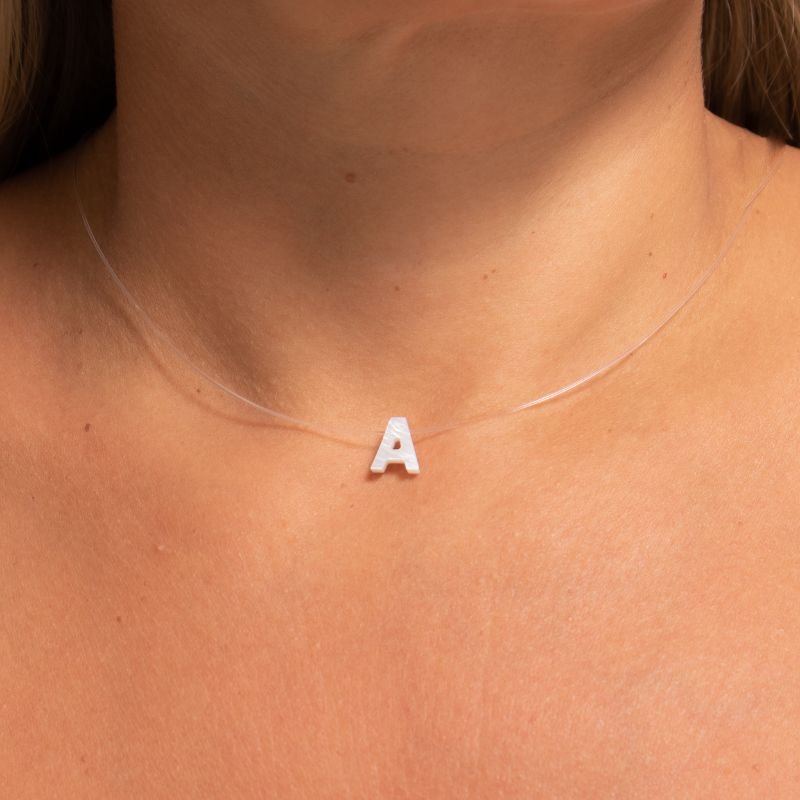 \"Colar Fio de Nylon com Letra Madre Pérola 35/40cm em Prata 925, elegância e exclusividade em cada detalhe.\"Peças em PRATA 925.