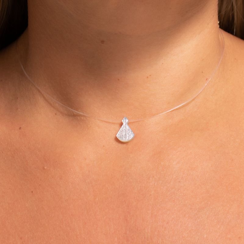 Colar Nossa Senhora Aparecida em Madre Pérola com fio de nylon e Prata 925, fé e elegância em 35/40cm.Peças em PRATA 925.