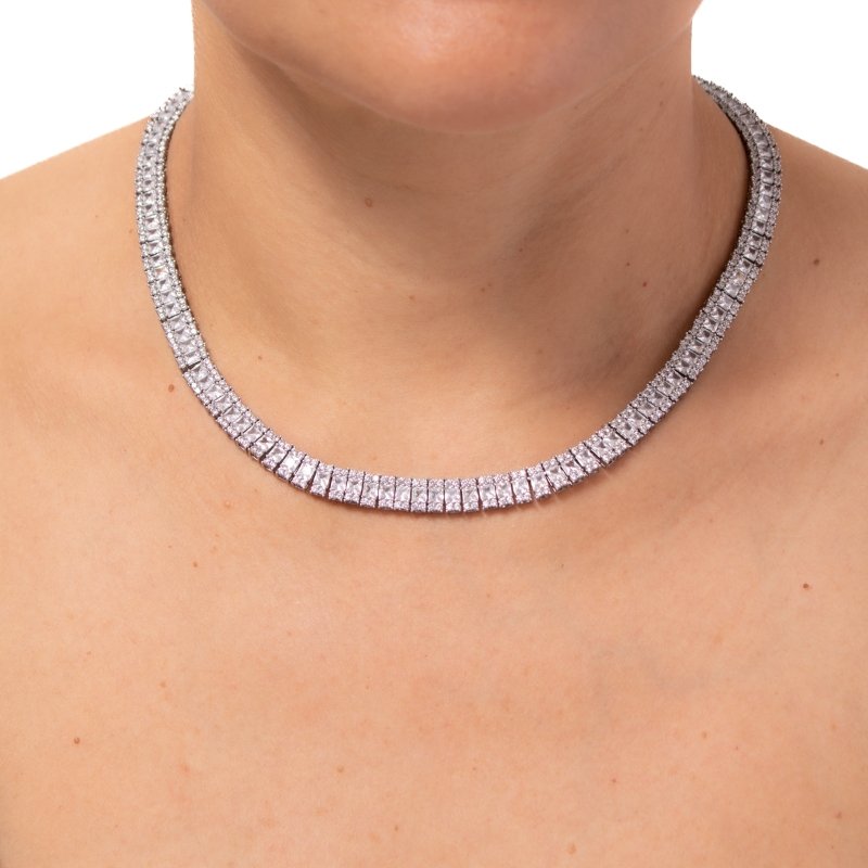 Colar Riviera com micro zircônias e zircônia central, luxo discreto e perfeito.Brincos e piercing fake: 5 milésimos de Ouro 18k.