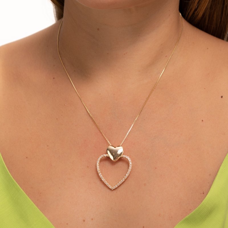 Colar Venez. C/ping. Coração Duplo C/zirc. 40/45cm