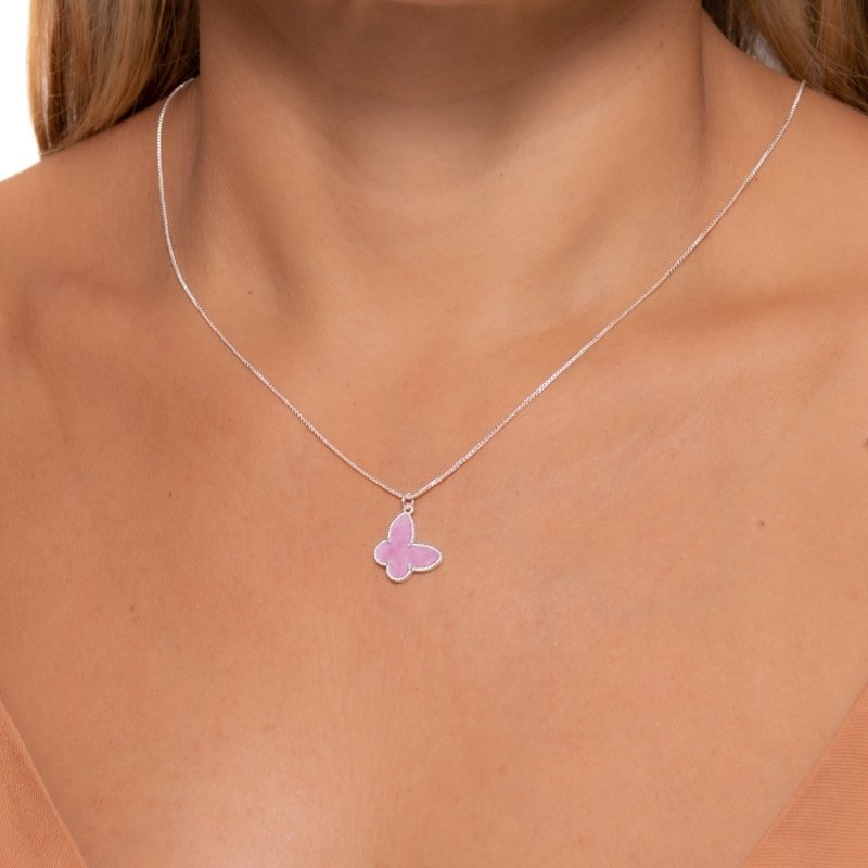 Colar Veneziana com pingente de borboleta 14mm em Prata 925 – delicadeza e brilho em cada detalhe.Peças em PRATA 925.