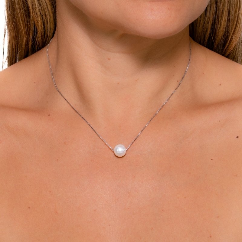 \"Colar Veneziana com Pérola 40/45cm, em Prata 925 com banho de ródio, sofisticado e elegante para todas as ocasiões.\"Peças em PRATA 925.
