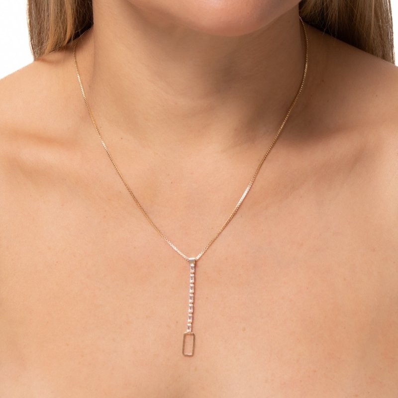 Colar veneziana 40/45cm com riviera baguete: brilho sofisticado em design clássico e contemporâneo.Brincos e piercing fake: 5 milésimos de Ouro 18k.
