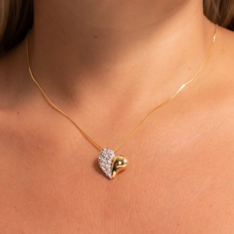 Colar Veneziana Pingente Coração Bicolor 40/45cm