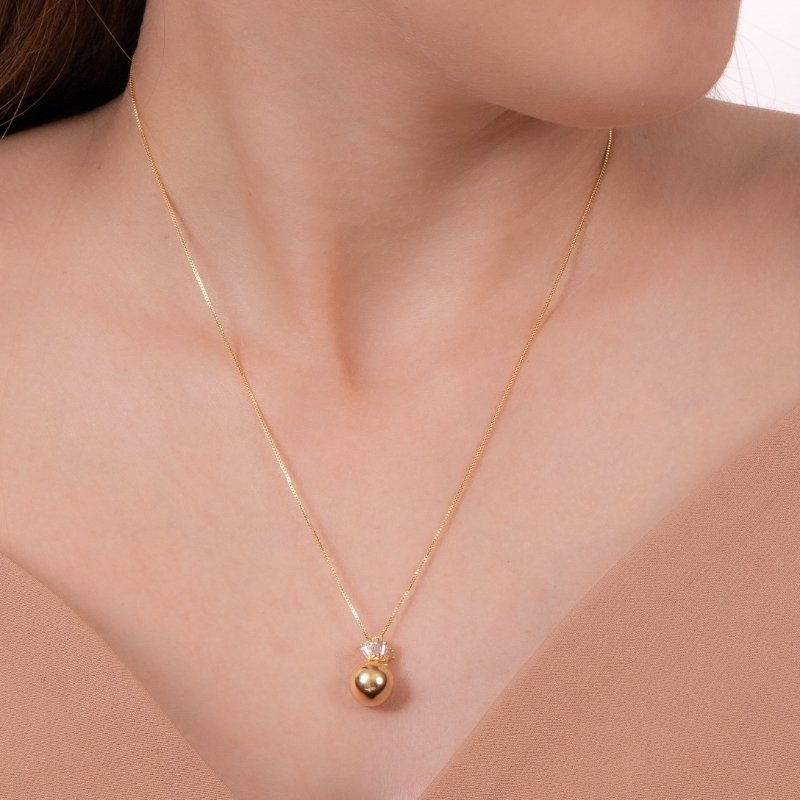 Colar veneziana com pingente riviera baguete e bola, perfeito para um toque sofisticado e moderno.Brincos e piercing fake: 5 milésimos de Ouro 18k.