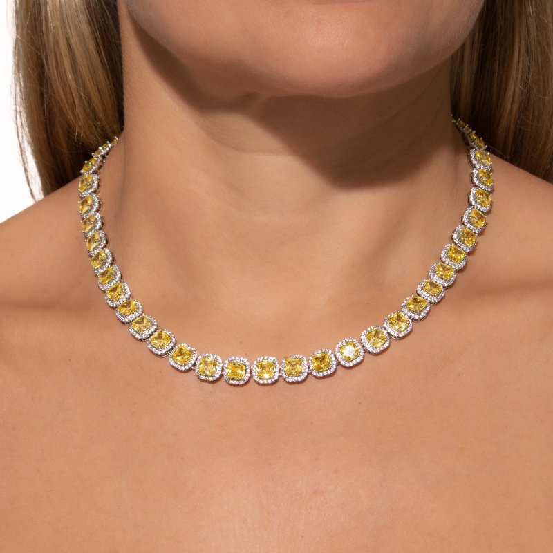 Colar Zircônia 6mm Quadrada Cravejada 45cm