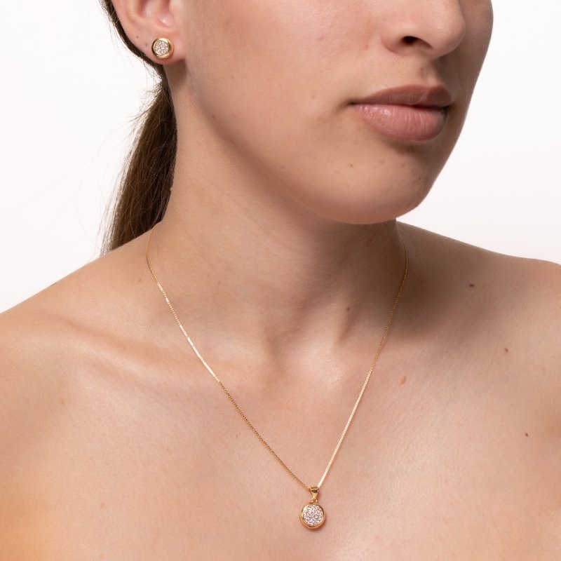 Conjunto Veneziana Círculo Cravejado em Zircônia com Fecho Lagosta 40/45cm: charme sofisticado com um toque de brilho elegante.Brincos e piercing fake: 5 milésimos de Ouro 18k.