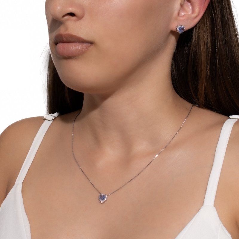 Conjunto Veneziana com Coração Cravejado em Platina, delicadeza e brilho em uma joia romântica e sofisticada.Brincos e piercing fake: 5 milésimos de Ouro 18k.