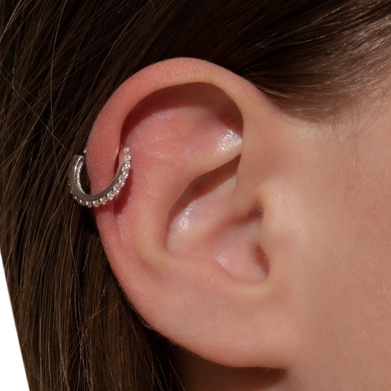 Piercing Conch Argola Cravejada em Prata 925, brilho sofisticado para um toque moderno na orelha.Peças em PRATA 925.