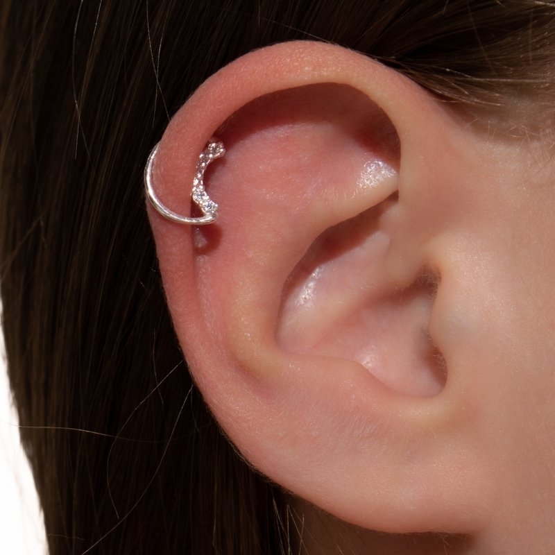 Piercing Daith Lua com Zircônia em Prata 925, estilo místico com um toque de brilho elegante.Peças em PRATA 925.