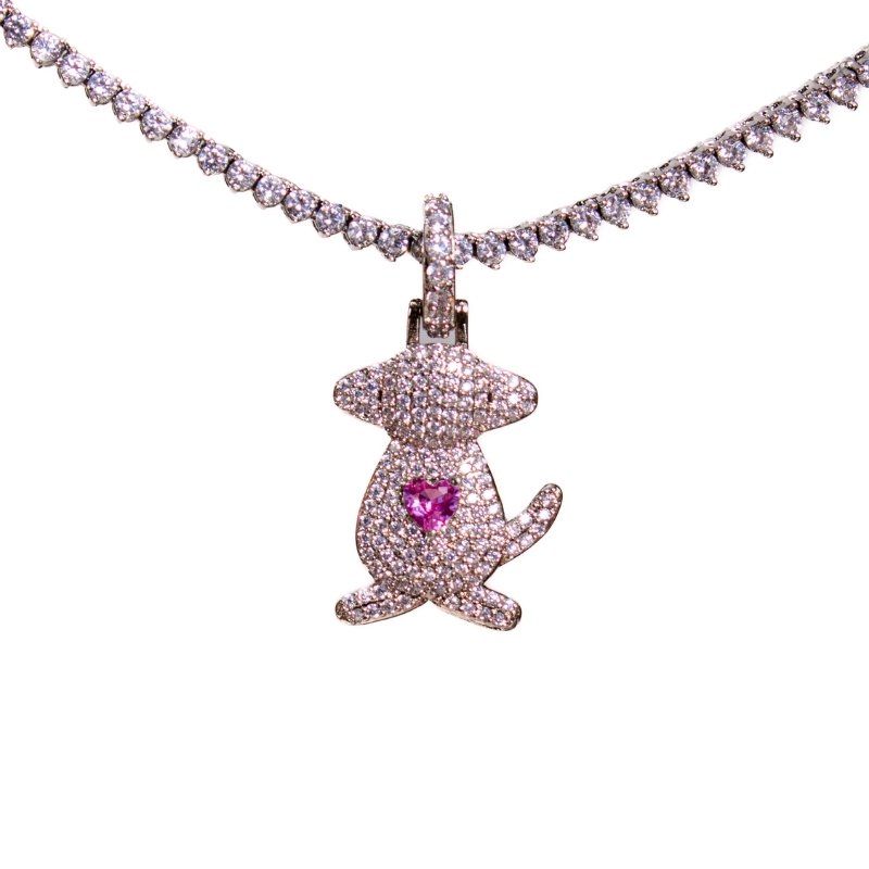 \"Pingente Cachorro Cravejado, uma peça fofa e cheia de brilho, perfeita para os amantes de pets e estilo.\"Brincos e piercing fake: 5 milésimos de Ouro 18k.
