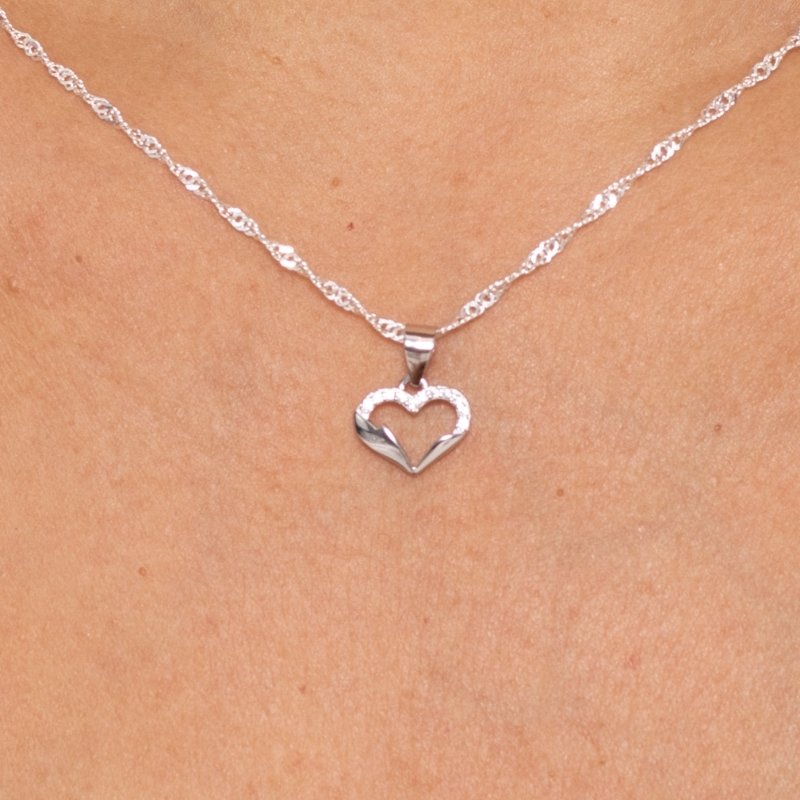 \"Pingente coração com zircônias, em prata 925 com banho de ródio, uma joia delicada e cheia de charme para seu look.\"Peças em PRATA 925.
