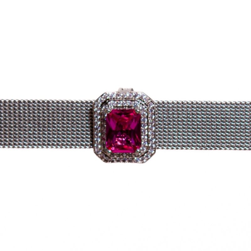 Pingente cravejado com zircônia retangular colorida, ideal para quem busca elegância e modernidade em acessórios.Brincos e piercing fake: 5 milésimos de OuBrincos ro 18k.