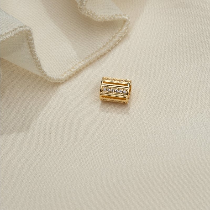 Pingente separador em zircônia 9mm, uma peça elegante e refinada que adiciona brilho e sofisticação a colares e pulseiras.Brincos e piercing fake: 5 milésimos de Ouro 18k.