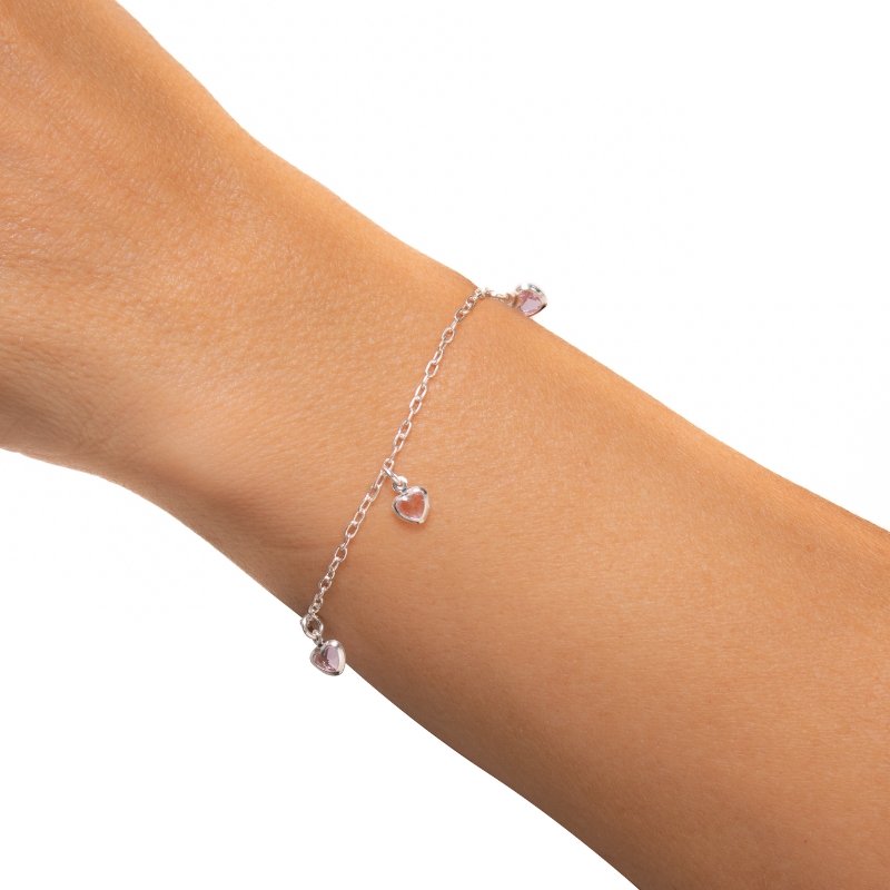 Pulseira Cadeadinho com 5 Corações em Zircônias: charme delicado e brilho em Prata 925 para seu mixPeças em PRATA 925.