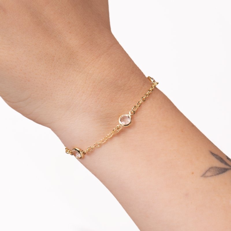 Pulseira Cadeadinho com Zircônias 6mm, brilho moderno com toque sofisticado para o dia a dia.Brincos e piercing fake: 5 milésimos de Ouro 18k.