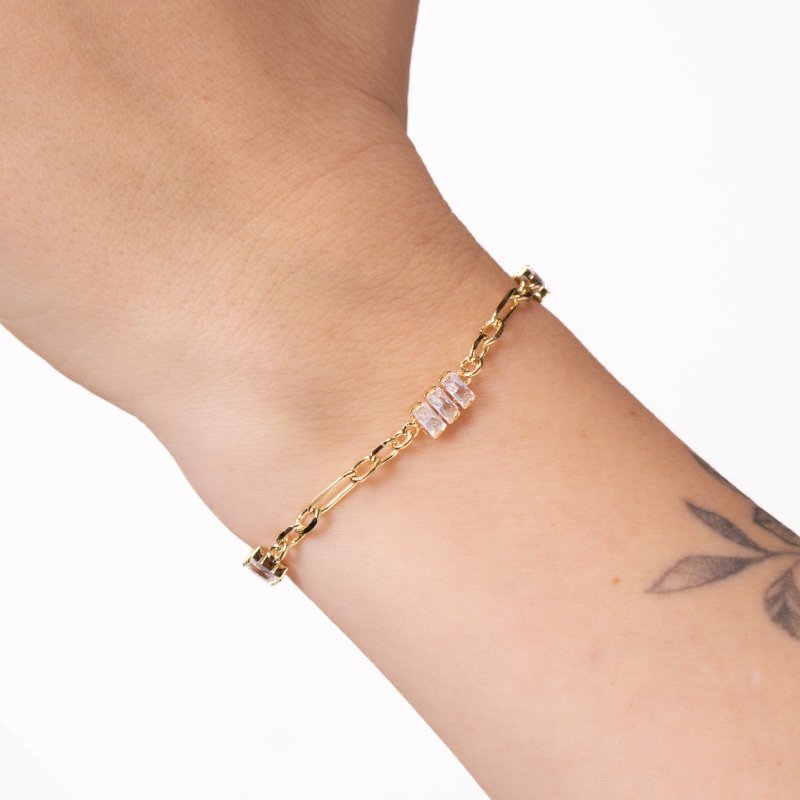 Pulseira Cartier mista com Riviera baguete, combinação de sofisticação e brilho em um design atemporal.Brincos e piercing fake: 5 milésimos de Ouro 18k.