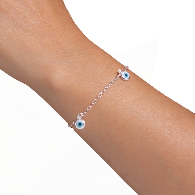 Pulseira Elo Oval Com 4 Olho Grego Prata925 Cs