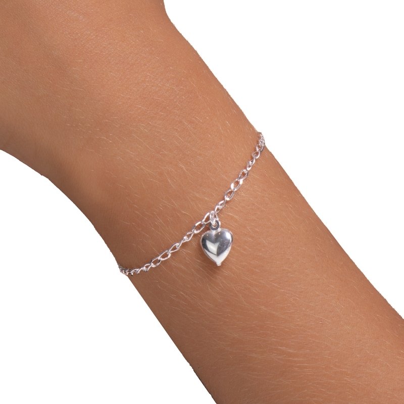 Pulseira elo grume com pingente coração infantil em prata 925, delicadeza e estilo para o dia a dia das crianças.Peças em PRATA 925.