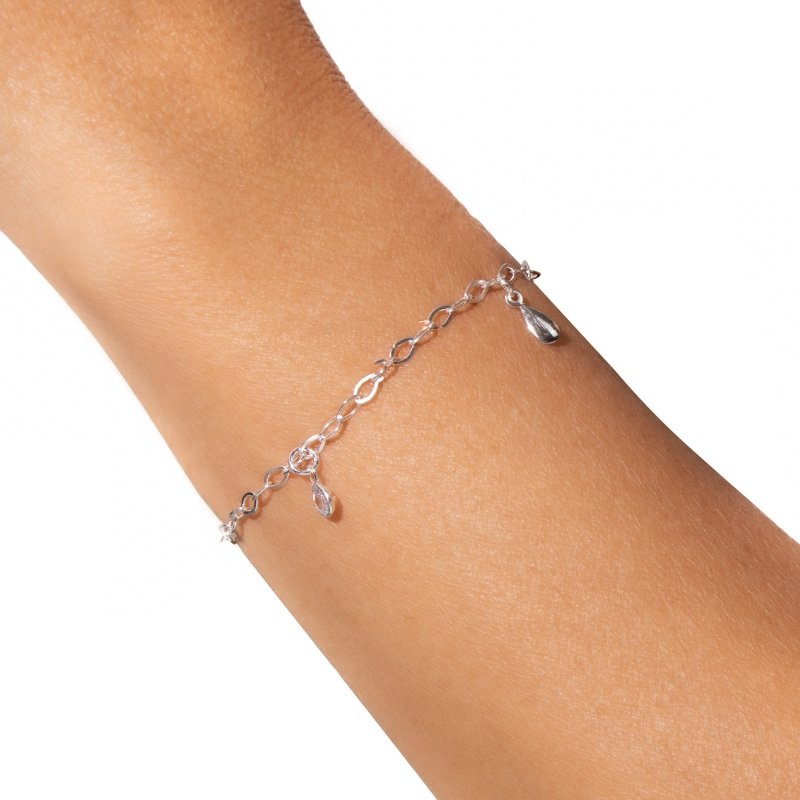 Pulseira Elo Oval Com Zircônias Prata 925-cs