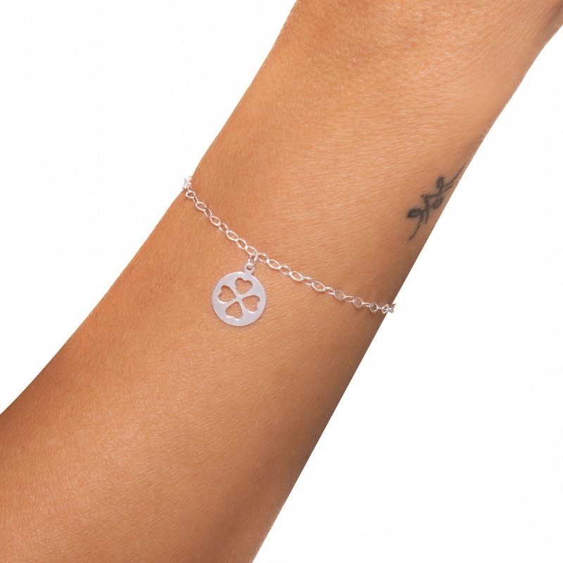 Pulseira Elo Oval Pingente Trevo Prata 925 Cs