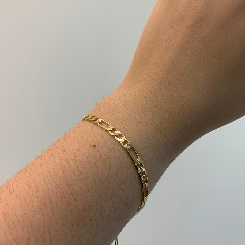 PULSEIRA FIGARO 4MM MASCULINA COM FECHO LAGOSTA 21CM: estilo masculino e elegância atemporal em um design moderno.Brincos e piercing fake: 5 milésimos de Ouro 18k.