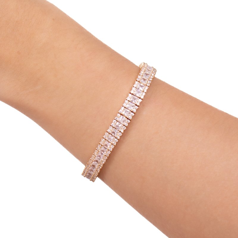 Pulseira Riviera quadrada 3mm, delicadeza e brilho para qualquer ocasião.Brincos e piercing fake: 5 milésimos de Ouro 18k.