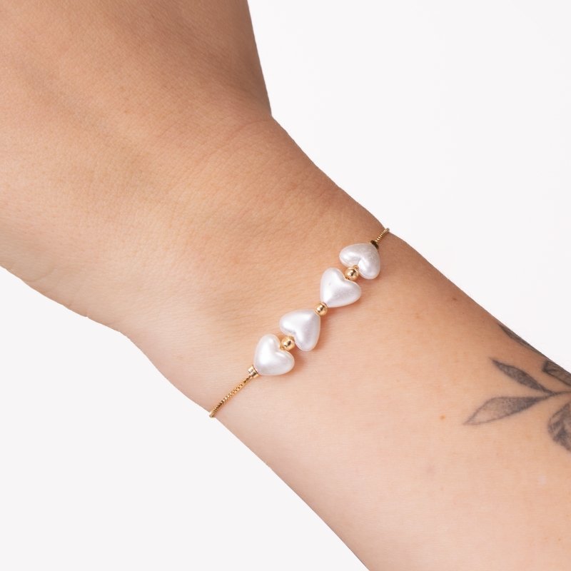 Pulseira Veneziana com pingente Coração de Pérola: delicadeza e elegância para todas as ocasiões.Brincos e piercing fake: 5 milésimos de Ouro 18k.