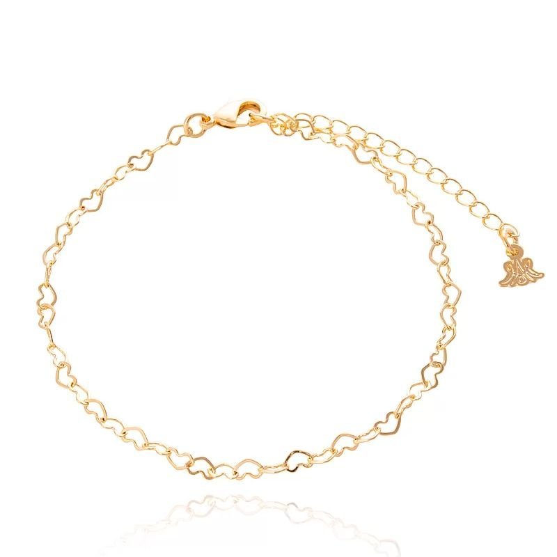 Tornozeleira coração com fecho lagosta, ajustável de 20 a 25cm — delicadeza e charme em cada detalhe.Brincos e piercing fake: 5 milésimos de Ouro 18k.
